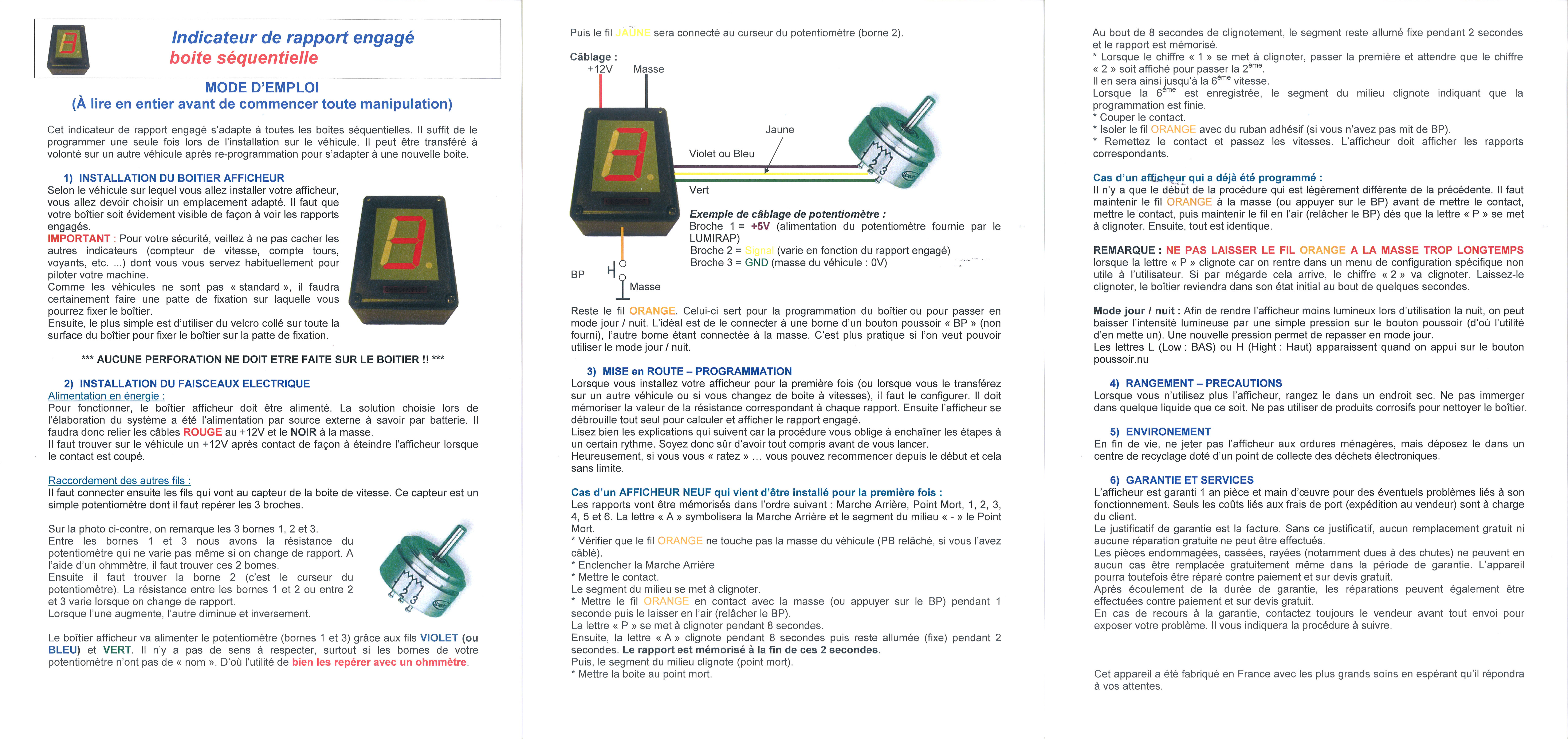 Il permet de connaître en temps réel (lorsque l'on roule) quelle vitesse est enclenchée. Sur une boite séquentielle un capteur permet d'informer l'afficheur pour qu'il affiche le rapport engagé.